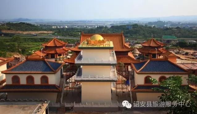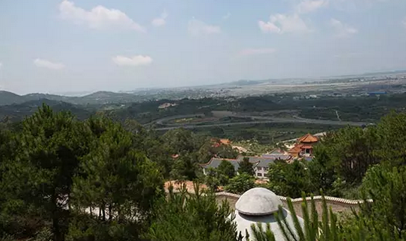 ![]() 诏安金光明寺有两条交通干线经过,沈海高速和国道324线分立于寺院东西两侧,穿过凤山山脉并延展至山脉北面,状如古代官服蹀躞带上的双铊尾。寺院前的沈海高速诏安东出口把两条交通干线“虚束”在凤山山脉上,而侧前方的收费站则犹如蹀躞带上的带銙,牢牢地镶嵌在蹀躞带上。这样的地理位置在城市里肯定是黄金地段,繁华喧闹是难免的,但在诏安金光明寺却只有天王殿以下的凡界能感受到高速公路匆匆来和往的车辆,天王殿之上在青龙山、白虎山和建筑物的布局下变得安静。