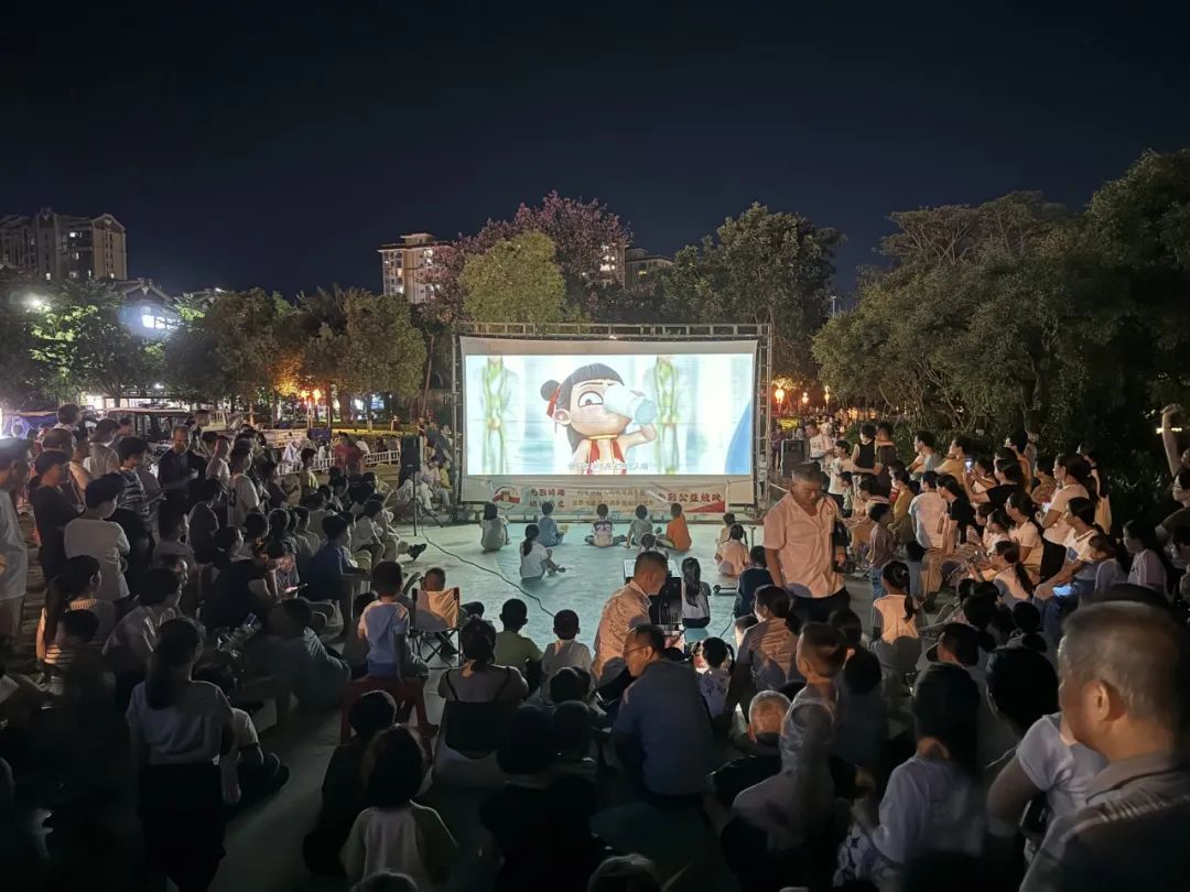 活动还特别设置了露天电影环节,选取了蕴含中国传统文化、彰显奋斗精神的优秀国漫作品《哪吒之魔童闹海》。大小朋友或坐或站,孩子欢呼、成人静观、长者回味,电影不仅带来视觉震撼,更串联起不同代际的情感共鸣,温暖整个夜晚。活动延续“扬帆计划”志愿服务传统,青年志愿者忙碌穿梭,有序引导,为这场夏夜聚会增添了一抹亮丽的色彩。