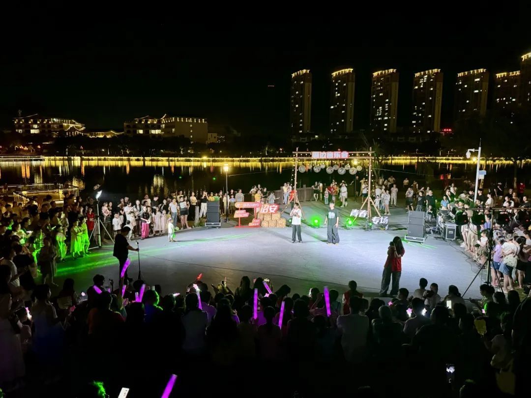 厝边音乐会5.0「青春专场」热力开唱!来自返乡大学生和本地青年的精彩演出轮番登场,经典金曲、流行节奏、民谣弹唱与摇滚激情交织共鸣。观众们惬意而坐,沉浸于晚风、湖景与旋律之中。荧光闪烁,灯海涌动,熟悉的歌曲引发全场共鸣,连湖中优雅游弋的黑天鹅,也仿佛为这个夜晚增添了几分灵动。