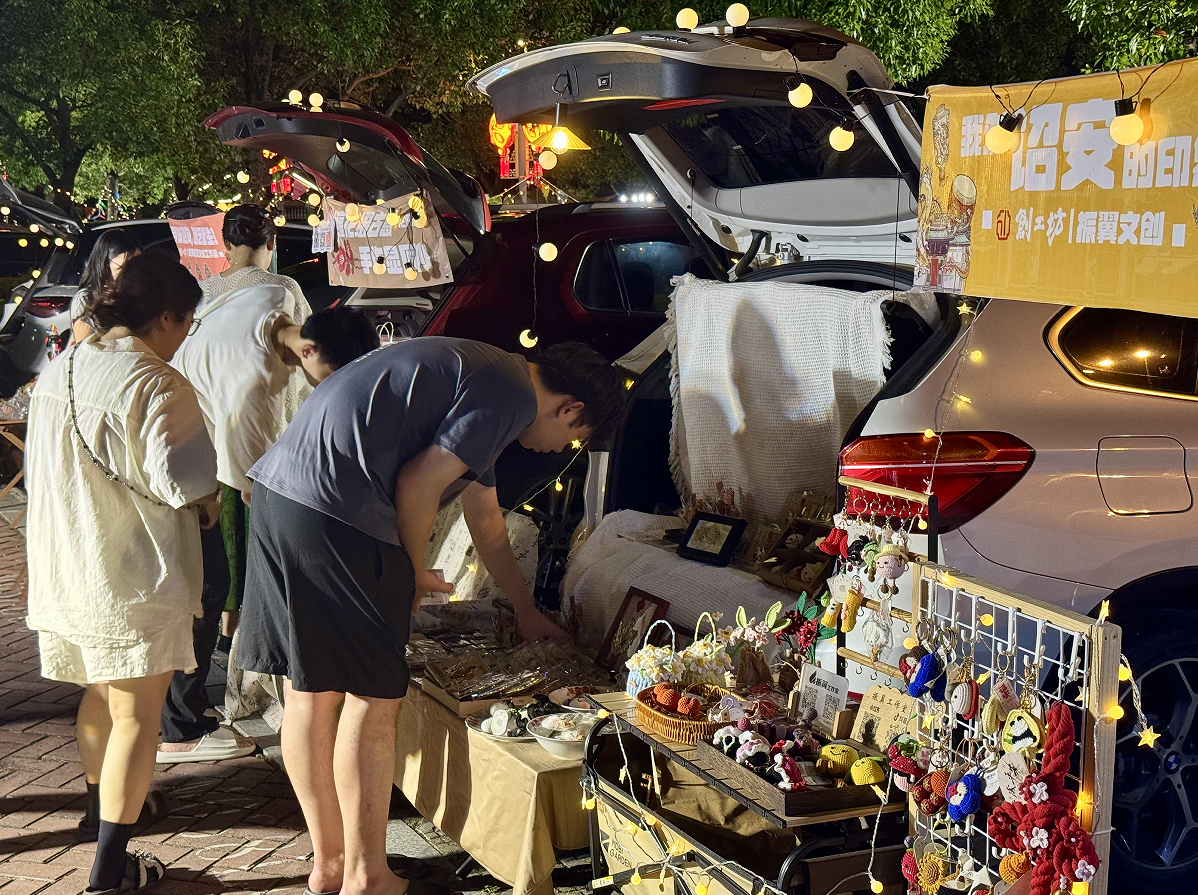 “星光后备箱青年创意集市”热闹开张!20多辆青年创意车主打开后备箱,变身风格独特的快闪小店。诏安青梅特调、非遗文创、精品手冲咖啡、国潮手作……琳琅满目的特色摊位吸引市民纷纷驻足。摊主们巧妙融入诏安文化元素,让每一件产品都承载着本地的故事与温度。正如一位摊主所说:“我们卖的不仅是商品,更是一种态度,一种属于诏安的生活方式。”