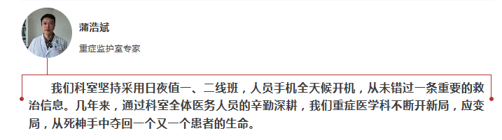 六年来,蒲浩斌栉风沐雨,担起县域重症医学的引路人,带领全科摸着石头过河,逐步完善重症医学诊疗模式和各项规章制度,在组织科室医护人员做好危重症患者救治工作的同时,充分利用外出交流深造的机会,学习先进诊疗技术,分享和交流诊疗经验。