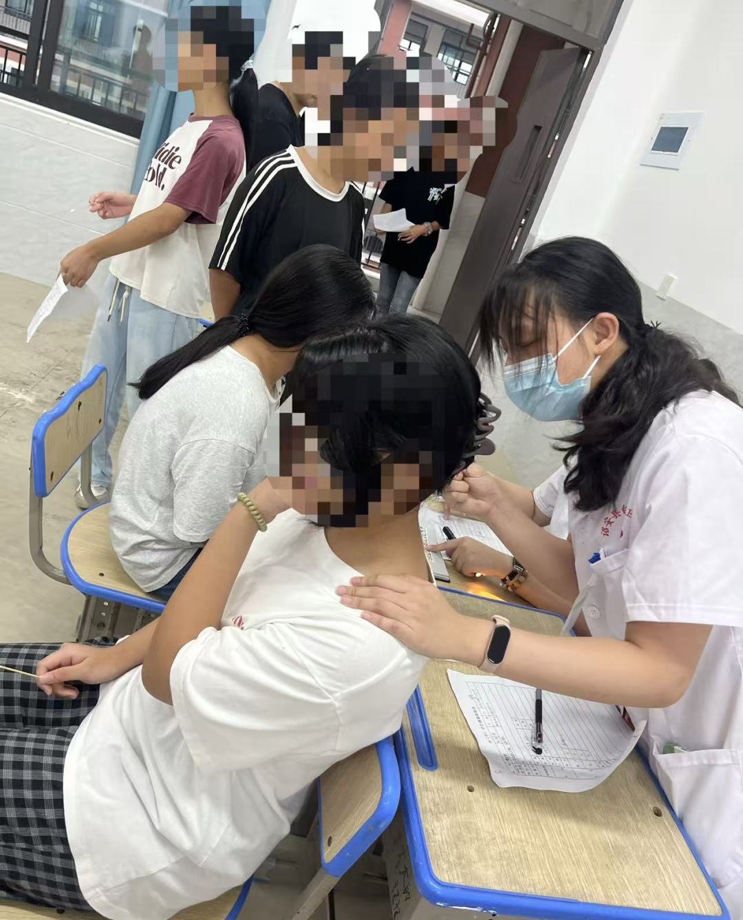 体检过程中,医护人员耐心细致地为每一位学生进行检查,还积极向学生普及健康常识,引导学生养成良好的卫生习惯。孩子们也积极配合,整个过程秩序井然。为评估学生体质和早期发现健康问题提供了科学依据。