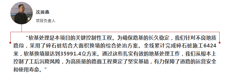 高效推进的背后,是对工程质量的严格把控。特别是在沿线软土地基上筑路,就像在“豆腐上建高楼”,是整个项目成败的关键。