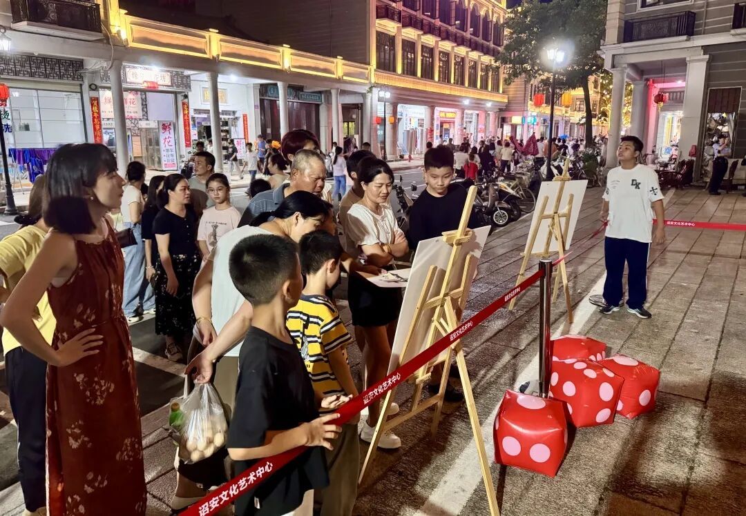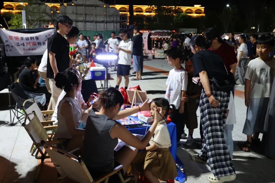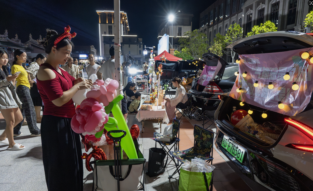中山文化广场作为“夜经济+文化”的核心展演区,“一起‘趣’赶集”文化市集与“星光后备箱”创意市集同步开放,集中展示诏安书画、非遗手作与文创精品。游客不仅可以近距离欣赏,还能亲手体验书画文创、姚家漆艺、彩扎等传统技艺,深入感受本土非遗之美。汽车后备箱摇身一变成为“星光后备箱”市集,汇聚众多青年创客,带来集“逛、吃、购、赏”于一体的创意消费新体验。