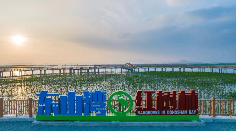 在漳州市东山县东山湾,200多公顷红树林绿意葱茏,一条木栈道宛如飘带,舒展在海面之上。间或有几只白鹭翩然飞过,栖落在枝头、水畔。