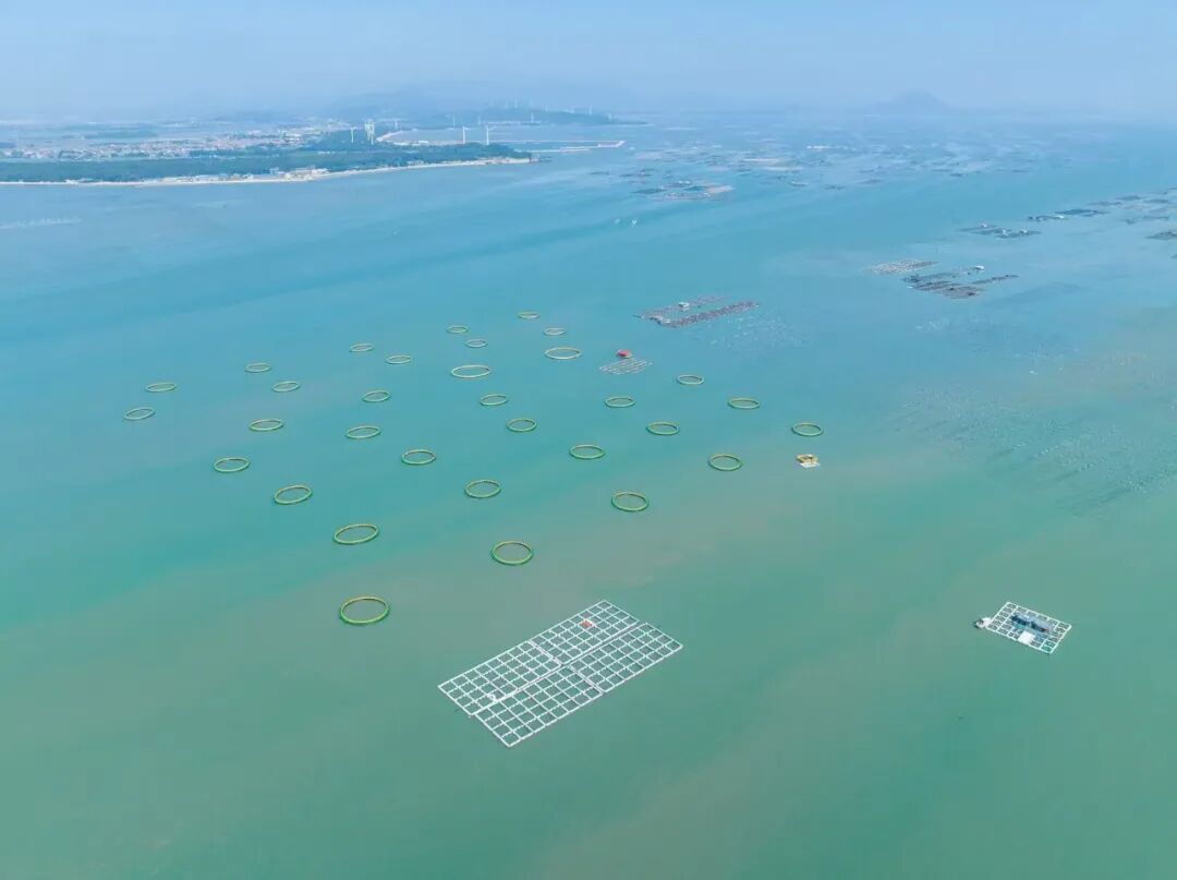 其网箱通过工厂标准化加工,品质可控且寿命更长,建设成本仅为同规格装备的1/3,周期压缩至行业平均水平的1/4。项目规划建设23口超大型深水网箱,总养殖水体59.29万立方米,配套风电与海水淡化设施。