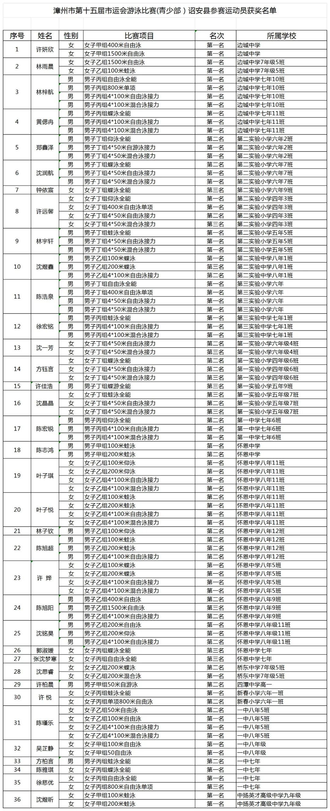 近日漳州市第十五届运动会青少部游泳比赛圆满落幕,诏安代表队不负众望,交出亮眼答卷!