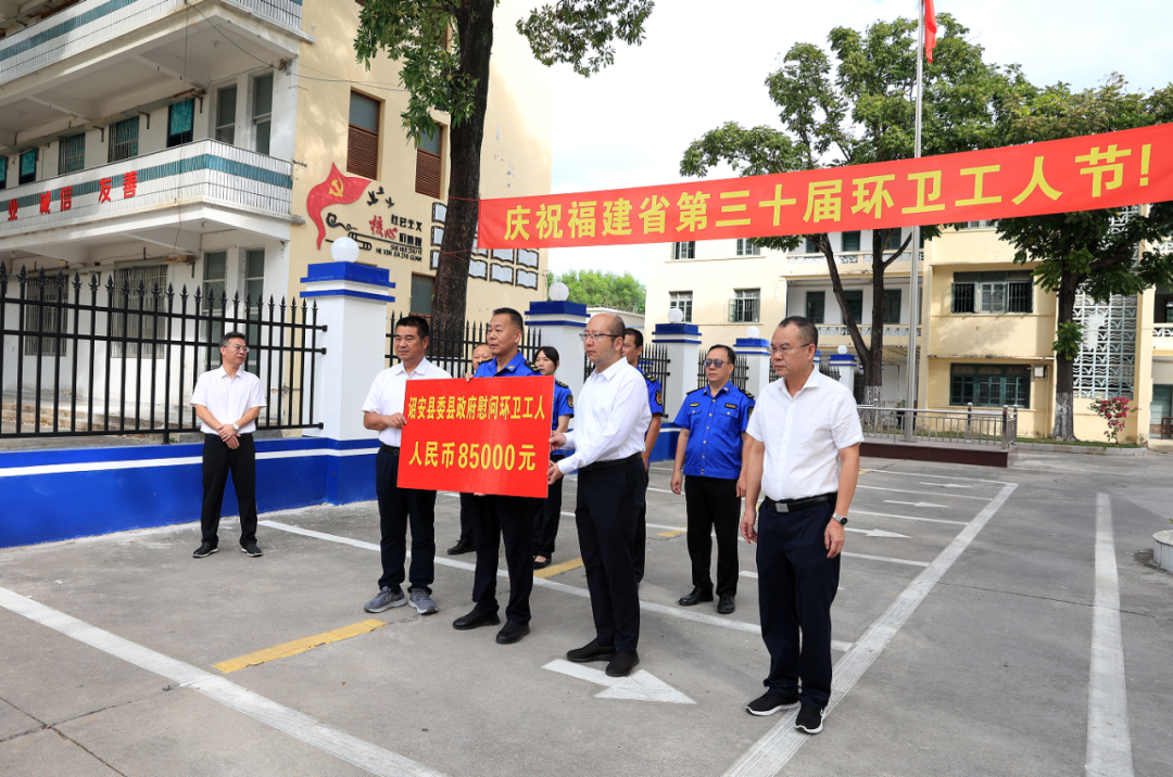 在福建省第三十届环卫工人节来临之际,10月24日,县委书记李亚容、县长远洋带队开展环卫工人节慰问活动,向他们致以崇高的敬意和节日的祝福。县委常委、宣传部部长陈三武,副县长蔡燕海参加活动。