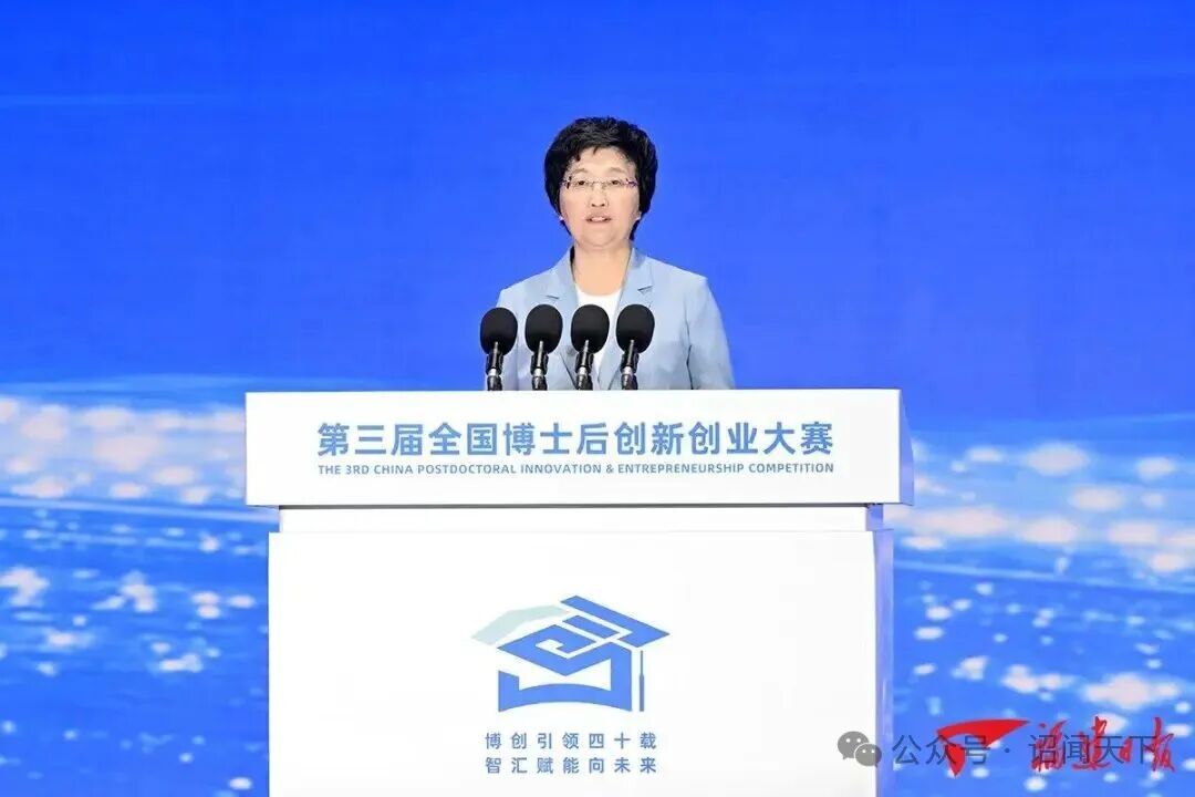 王晓萍在致辞中指出,博士后制度是我国培养高层次创新型青年人才的一项重要制度,促进博士后创新创业是高质量推动人才资源开发利用的重要举措。要深入学习贯彻党的二十届四中全会精神,通过办好大赛,积极搭建青年人才创新创业高水平交流平台,促进人才链与创新链、产业链、资金链的深度融合,为培育发展新质生产力、促进经济社会高质量发展蓄势赋能;全面深化人才发展体制机制改革,更大力度支持人才创新创业,建强具有国际竞争力的博士后制度,培养造就更多优秀人才,为强国建设、民族复兴伟业贡献积极力量。