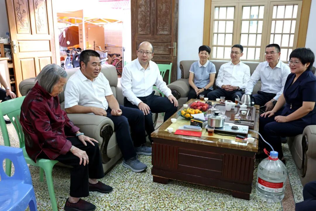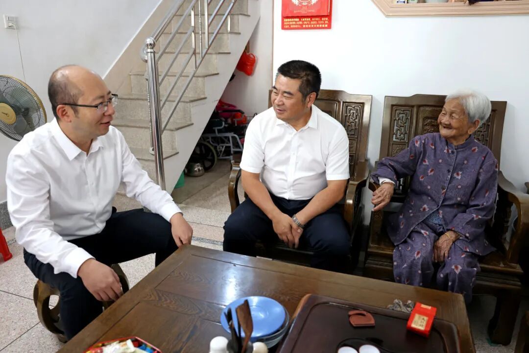 在百岁老人张欧突和徐惠玲家中,县领导为老人们送上重阳节的祝福和慰问金,与老人及其家属亲切交谈,关切询问日常起居、身体状况、家庭情况,看到老人精神矍铄、身体硬朗,县领导倍感欣慰,叮嘱家属要密切关注老人的身体变化和生活需求,用心陪伴、精心照料,让老人开心生活、颐养天年。县领导强调,老年人的幸福安康是社会文明进步的重要标志,更是诏安“世界长寿乡”“中国长寿之乡”品牌的鲜活见证。要进一步增强服务意识,全力构建多层次全要素的养老服务体系,提质提效农村幸福院、幸福食堂建设,落实高龄津贴等惠老政策,以扎实举措夯实老年人幸福晚年的根基。要大力弘扬尊老敬老的传统美德,加强对老年群体的关心帮助,用心用情解决老年人生活中遇到的实际困难,营造尊老爱老助老浓厚氛围,让广大老年人共享发展成果、安享幸福晚年,让“长寿之乡”的底色更浓、成色更足。