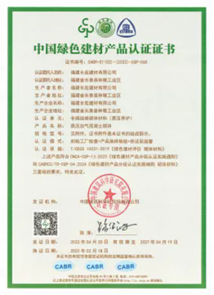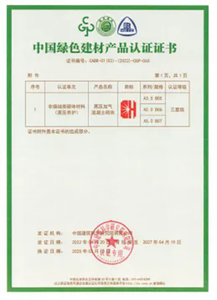 绿色建材产品认证证书样式