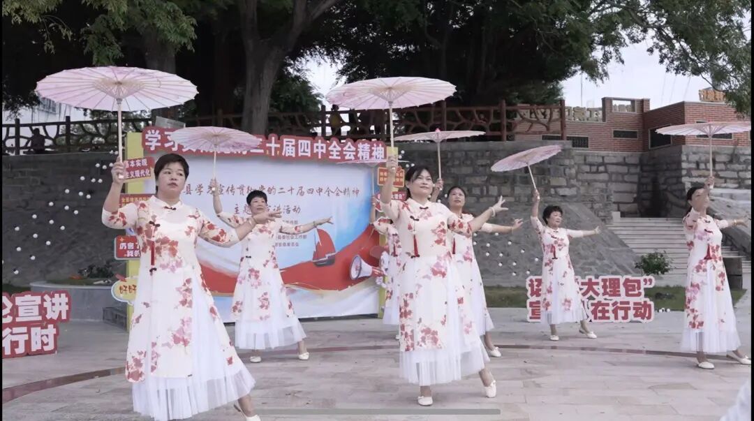 这股以创新形式深化理论传播的宣讲新风,迅速吹遍丹诏大地。在桥东镇桥园村口袋公园,古筝悠扬,墨香四溢,书法爱好者挥毫写下全会金句,广场舞队伍跳出了新时代的精气神;在诏安中山文化广场,非遗潮剧的唱腔悠扬而起,古老剧种焕发新声,将政策解读融入戏文,引得观众掌声连连;在太平镇“太平之风”展馆,宣讲与电影艺术党课结合,为基层党员干部提供了沉浸式的学习体验。