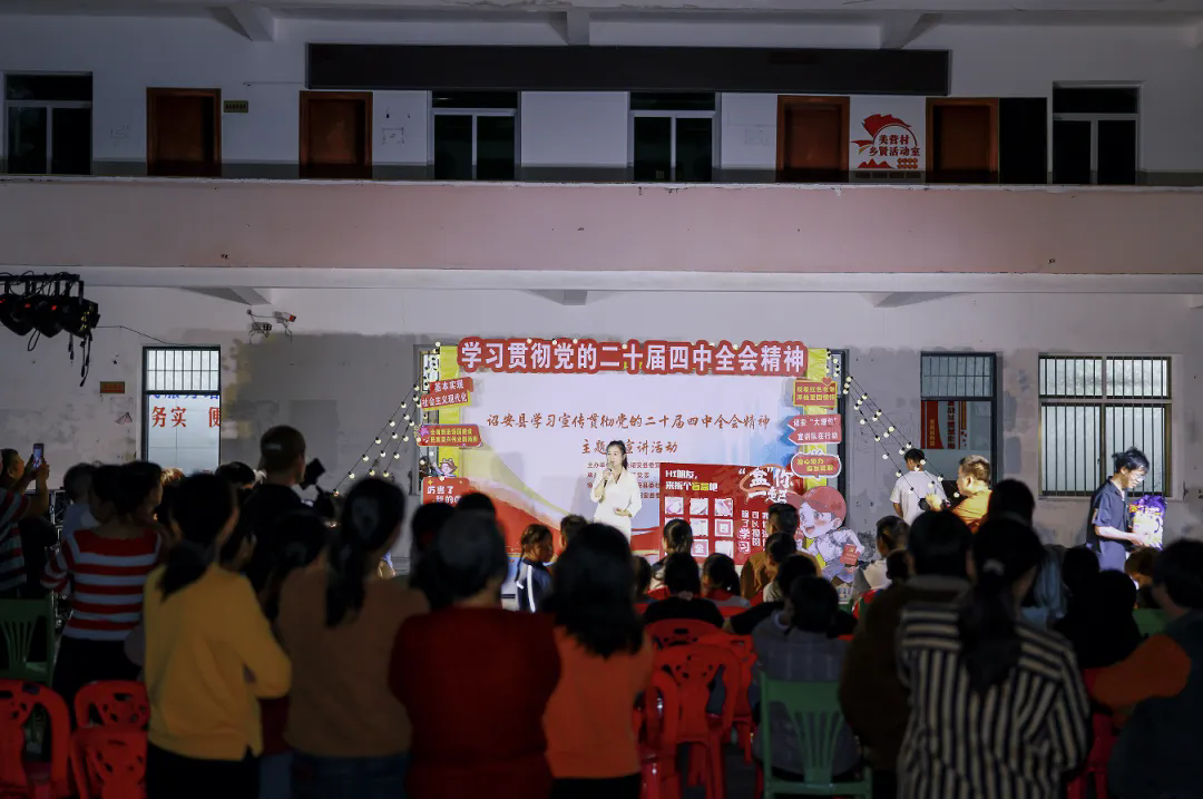 值得一提的是,本次活动虽以“微宣讲”命名,内容却毫不单薄,构成了一个“小而全”的有机整体。核心宣讲《8个数字打开“四中全会”》化繁为简,用一串数字梳理出全会的精髓;互动环节“‘盒’你一起学党的二十届四中全会精神”则让村民在趣味问答中深化理解;最后,微电影《荣誉之战》以光影艺术触动情感,完成了从理论认知到情感共鸣的升华。