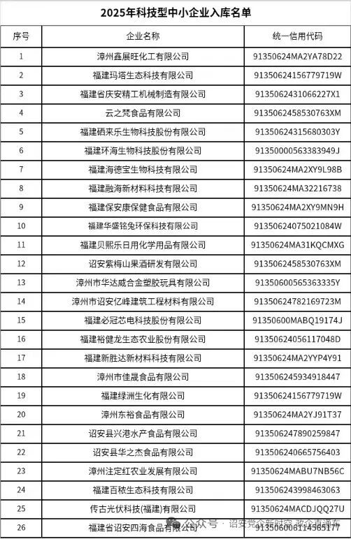 近日,省科技厅最新公布数据显示,2025年诏安县共有26家企业完成科技型中小企业评价入库,较去年增加7家,增长幅度达37%,创历史新高。这一成绩的取得,得益于诏安县持续深化创新驱动发展战略,依托特色产业创新院平台,构建起"科技型中小企业—高新技术企业—专精特新'小巨人'—单项冠军企业"的梯次培育体系,全面激发企业创新活力。