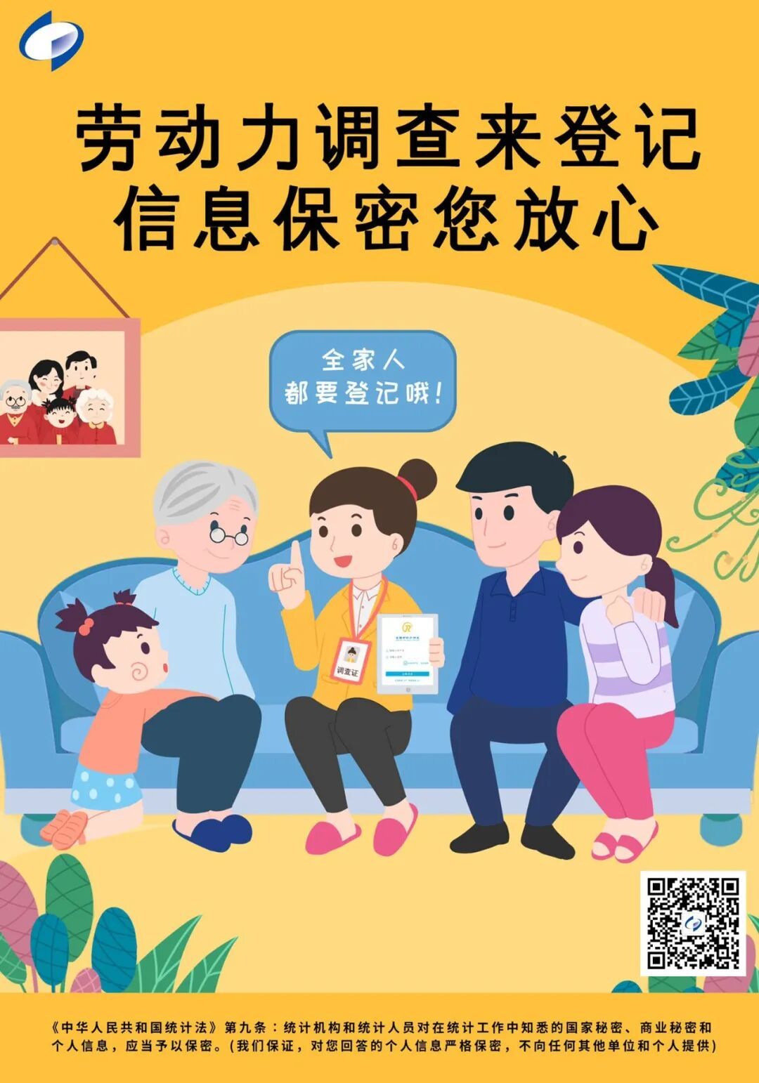 劳动力调查到您家,就业关乎你我他。当调查员敲响您的家门时,请给予理解和支持,共同为促进就业出一份力!