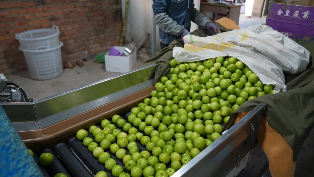 走进盐仓村的青枣果园,连片的枣树枝繁叶茂,一颗颗鸡蛋大小的青枣簇拥在一起,饱满翠绿、色泽鲜亮,沉甸甸地压弯了枝头。果农熟练地抬手采摘、分拣,将新鲜的青枣装入篮中,再迅速运往村里的收购站,等待发往全国各地,整个果园一片繁忙景象。