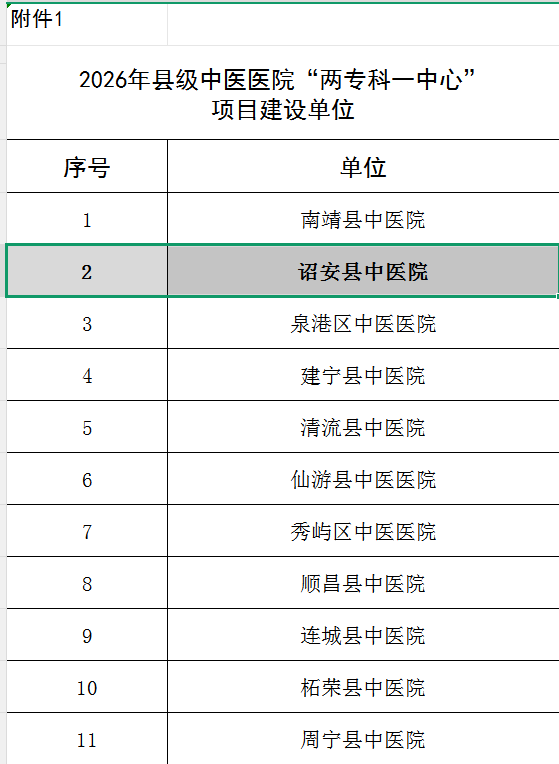 为贯彻落实《国务院办公厅关于印发中医药振兴发展重大工程实施方案的通知》(国办发〔2023〕3号)和《福建省促进中医药传承创新发展若干措施》(闽委发〔2020〕7号)精神,我院领导高度重视,持续加强中医药服务能力建设,并积极参与“两专科一中心”项目申报。福建省卫健委组织开展了2026年县级中医医院“两专科一中心”、中医馆服务能力提升项目申报及遴选论证工作。根据专家组论证结果,诏安县中医院入选福建省2026年县级中医医院“两专科一中心”项目建设单位,其中两专科为康复科、骨伤科,一中心为中医药适宜技术推广中心。