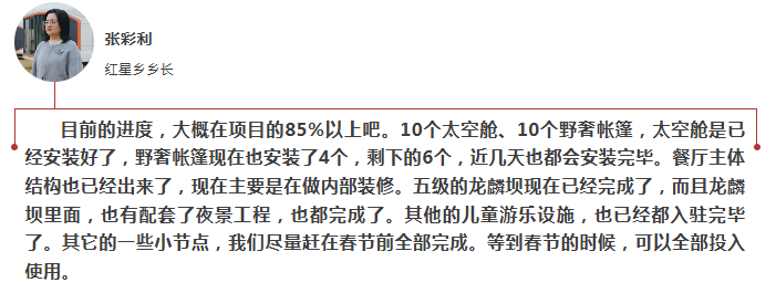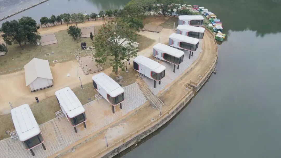 据了解,该项目重点推进三大片区建设,其中梅园亮点片区为核心区域,涵盖12.75公顷的梅园景区的全面提升改造。当前,景区已完成雨污及供水管道埋设、场地平整、草皮铺设等基础工程,10座临水小筑太空舱安装完毕,0.885千米河道清淤整治及325米沿溪旅游循环路段打通工作均已完成,餐厅、游客服中心、露营基地、儿童乐园等设施节点正在收尾。后续,景区将持续完善文旅配套,增设无动力互动装置、梅花鹿舍、特色农产品展示馆等亲子文化景点,同步升级梅花观赏区与运动健身区,聚力构建集乡村振兴、红色党建、产业融合于一体的休闲度假基地,拓展河岸休闲旅游、研学教育等多元业态。