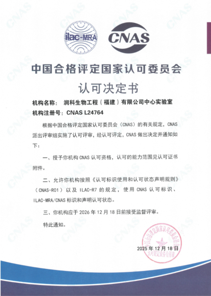 近日,诏安工业园区辖区内国家高新技术企业润科生物传来重磅捷报——公司中心实验室成功通过中国合格评定国家认可委员会(CNAS)评审,正式斩获CNAS实验室认可证书。这一里程碑式的成果,不仅标志着润科生物在DHA、ARA等核心产品检测领域及实验室管理水平达到国家权威认可标准,实现产品品质与国际全面接轨,更彰显了诏安工业园区以优质服务赋能企业科技创新、以产业升级培育新质生产力的坚实成效。