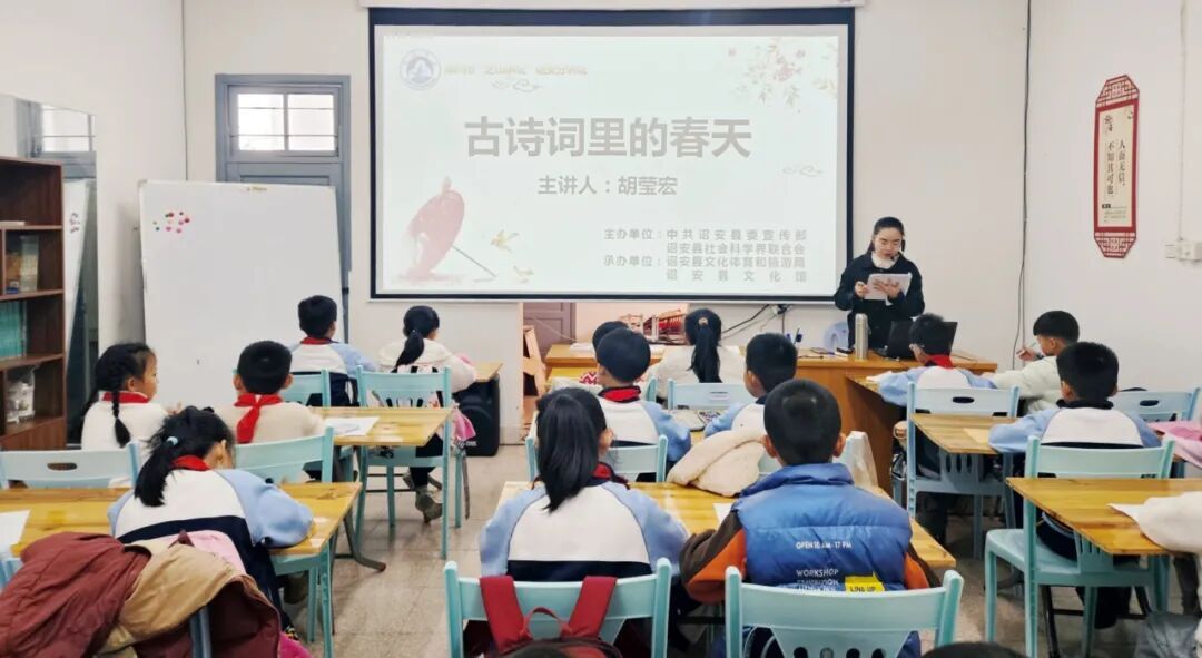 近日,2026年漳州市“芝山讲坛”诏安分讲坛首期活动在诏安县文化馆童蒙学堂开讲。本次讲座以《古诗词里的春天》为主题,由县文化馆胡莹宏主讲,通过“品、诵、答”的多元形式,带领听众邂逅诗词里的春景世界,感受古典文化的隽永魅力。