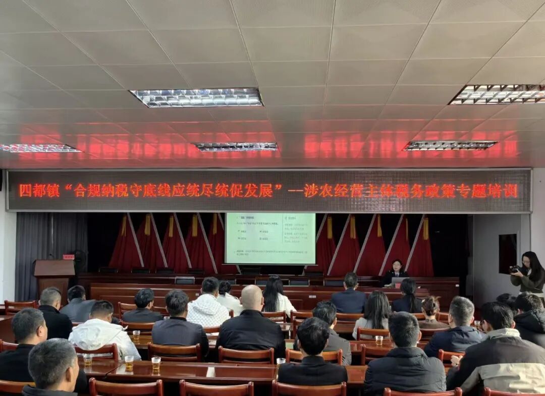为深入贯彻落实国家及地方涉农税务法律法规和最新政策要求,精准破解涉农经营主体税务处理痛点难点,助力经营主体规范发展、尽享税惠红利,1月23日,四都镇人民政府联合四都税务分局共同举办“合规纳税守底线 应统尽统促发展”涉农经营主体税务政策专题培训,辖区内数十家涉农企业、农民专业合作社的法人代表及财务负责人齐聚一堂,沉浸式汲取税务“干货”。