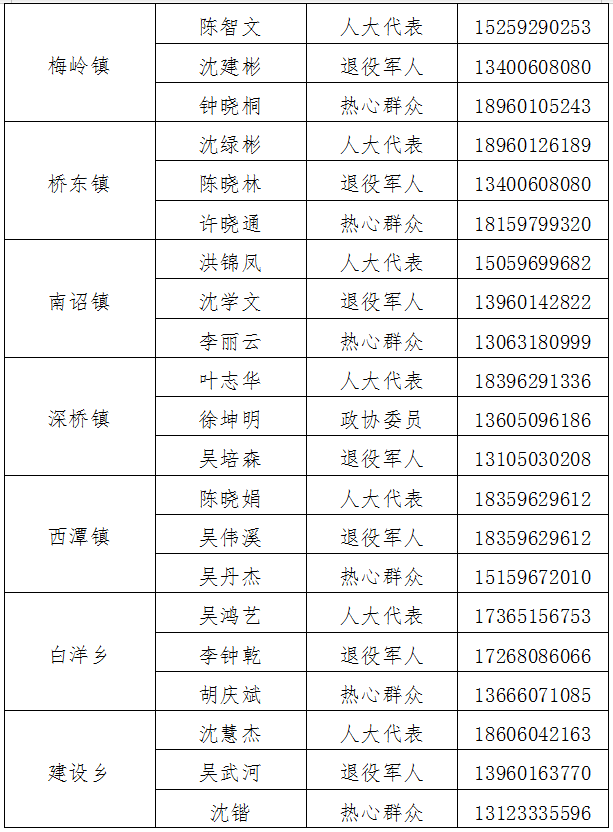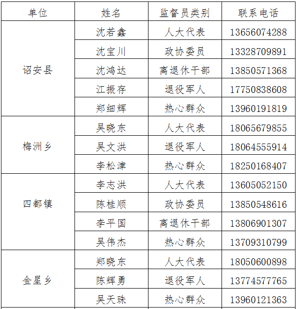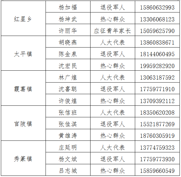 三、诏安县廉洁征兵监督员花名册