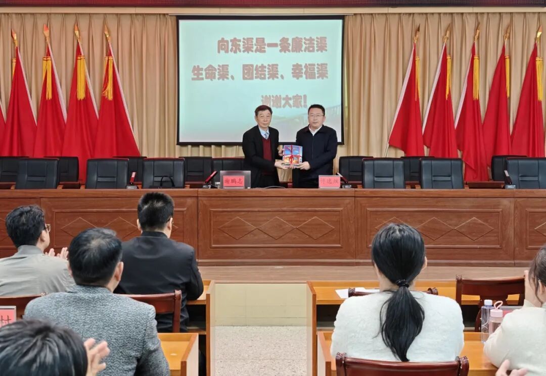 讲座中,谢鹏志运用大量珍贵史料和生动事例,深情回顾了20世纪70年代初,东山、云霄两县用近三年时间,建成了总长85.81公里的“人工天河”向东渠。生动诠释了以李文庆为代表的共产党人“心中有党、心中有民、心中有责、心中有戒”的崇高品格,彰显了“功成不必在我、功成必定有我”的历史担当,深刻展现了“团结协作、无私奉献、攻坚克难、开拓创新”的内涵。讲座尾声,谢鹏志向梅岭赠送《向东!向东!—向东渠引水工程回忆录》等书籍。