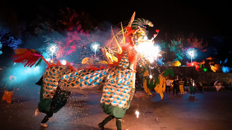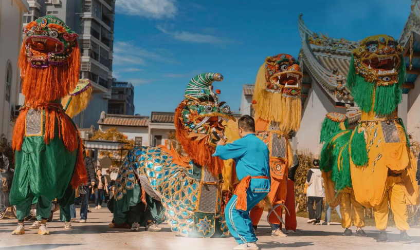 看锣鼓开道,乐曲震天,诏安非遗民俗表演 “三狮戏麒麟”打造“非遗神兽天团”视觉奇观。祥狮献瑞,虎跃龙腾,承载着“驱灾辟邪、摸首沾瑞”的吉祥寓意,带你沉浸式体验感受闽南非遗特色。