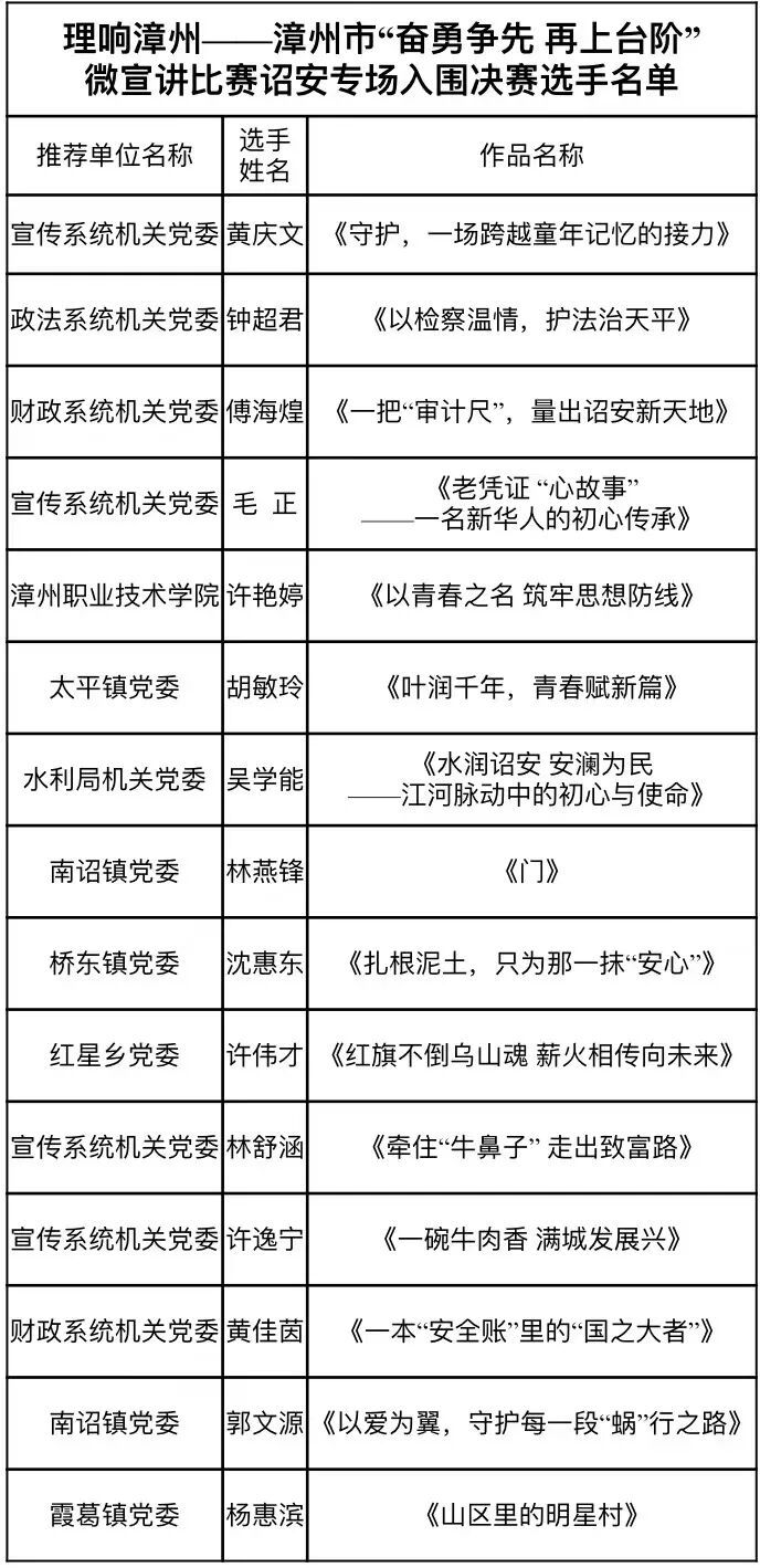 漳州市 “奋勇争先 再上台阶” 微宣讲比赛
