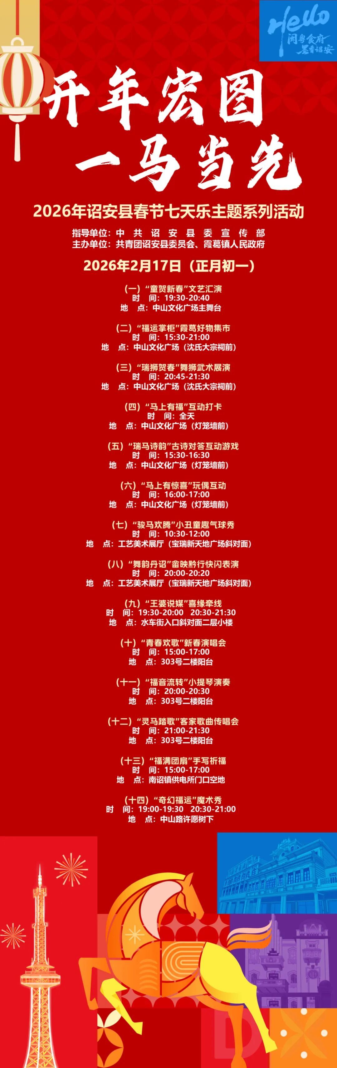 14大主题活动全覆盖,非遗展演、文艺盛宴、好物市集、趣味互动应有尽有,带你沉浸式解锁霞葛新春年味,赴一场兼具烟火气与文化感的新年之约。