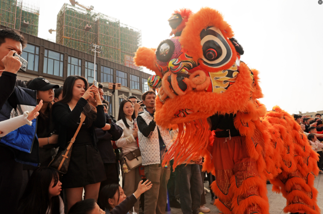 活动从下午一直持续到晚间,多个特色点位上,各类节目轮番登场。在“创艺逐光 乐动古城”音乐会上,音符穿梭于古街深巷,观众在开放式的音乐场景中自由漫步,感受历史与现代创作共振的能量。紧随其后的“龙腾狮跃·山海纳福”舞狮表演则将现场气氛推向高潮,金龙与彩狮灵动腾跃,融入祈福仪式与民俗互动,为古城点燃了热闹的年节生命力。