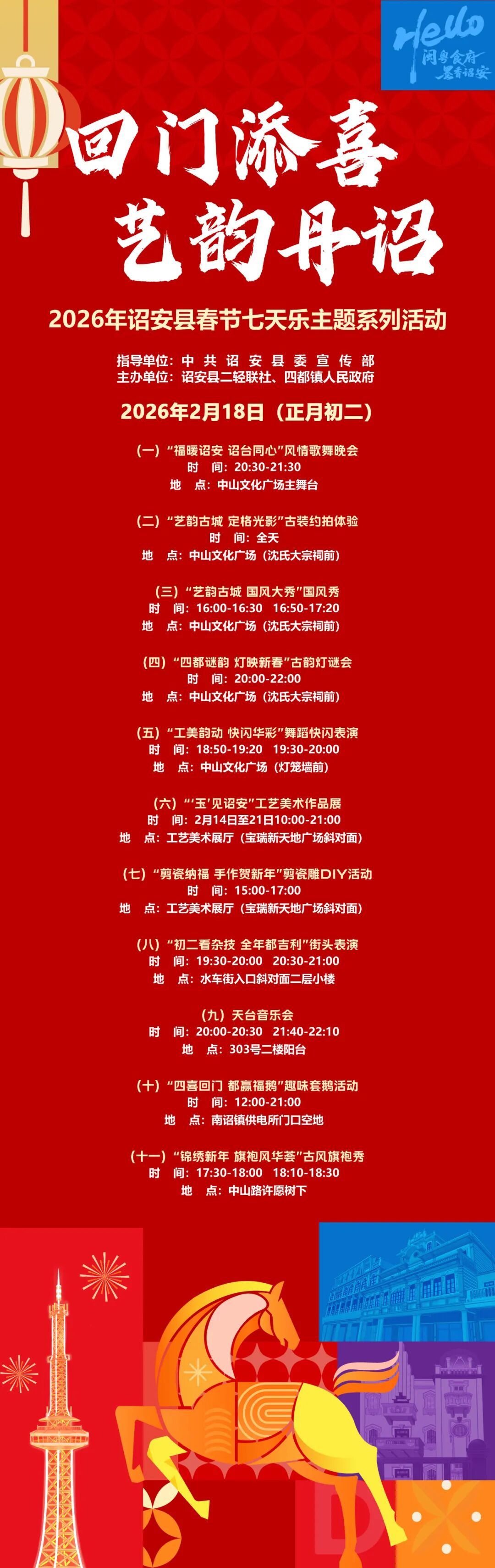 让我们在欢笑中感受两岸同心,在灯火里寻味古城年俗,共赴一场喜气洋洋的新春之约!