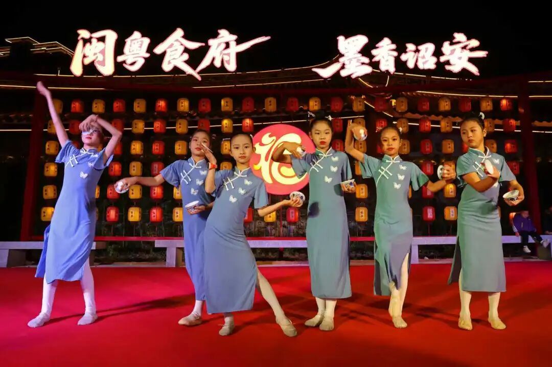 夜幕降临,古城灯火璀璨,活动氛围持续升温、推向高潮。“福暖诏安 诏台同心”风情歌舞晚会在主舞台温情启幕,婉转悠扬的闽南歌舞、暖意融融的互动合唱,生动传递两岸同源的深厚情谊与新春美好祝福,打动了现场每一位观众。