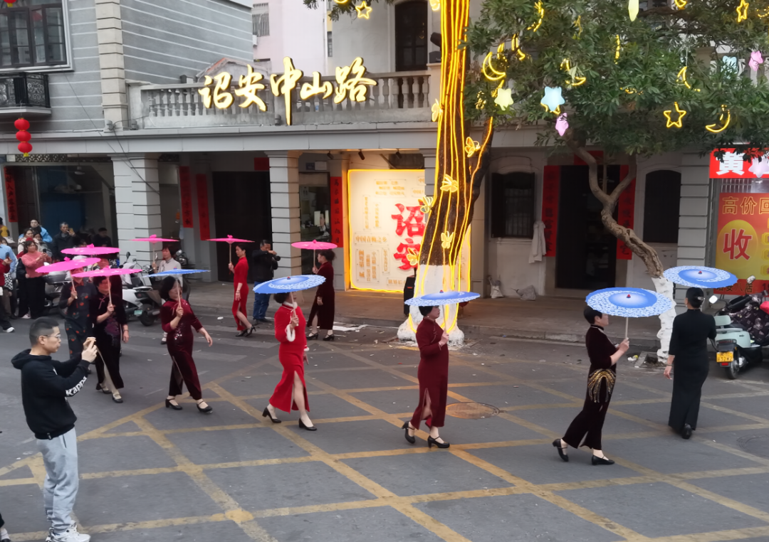 此外,“锦绣新年 旗袍风华荟”在中山路许愿树下优雅上演,身着各式旗袍的表演者款款而行,传统纹样与雅致剪裁相得益彰,搭配悠扬古典音乐,将东方美学与古城风韵完美融合,为新春古城增添了一抹温婉优雅的亮色。