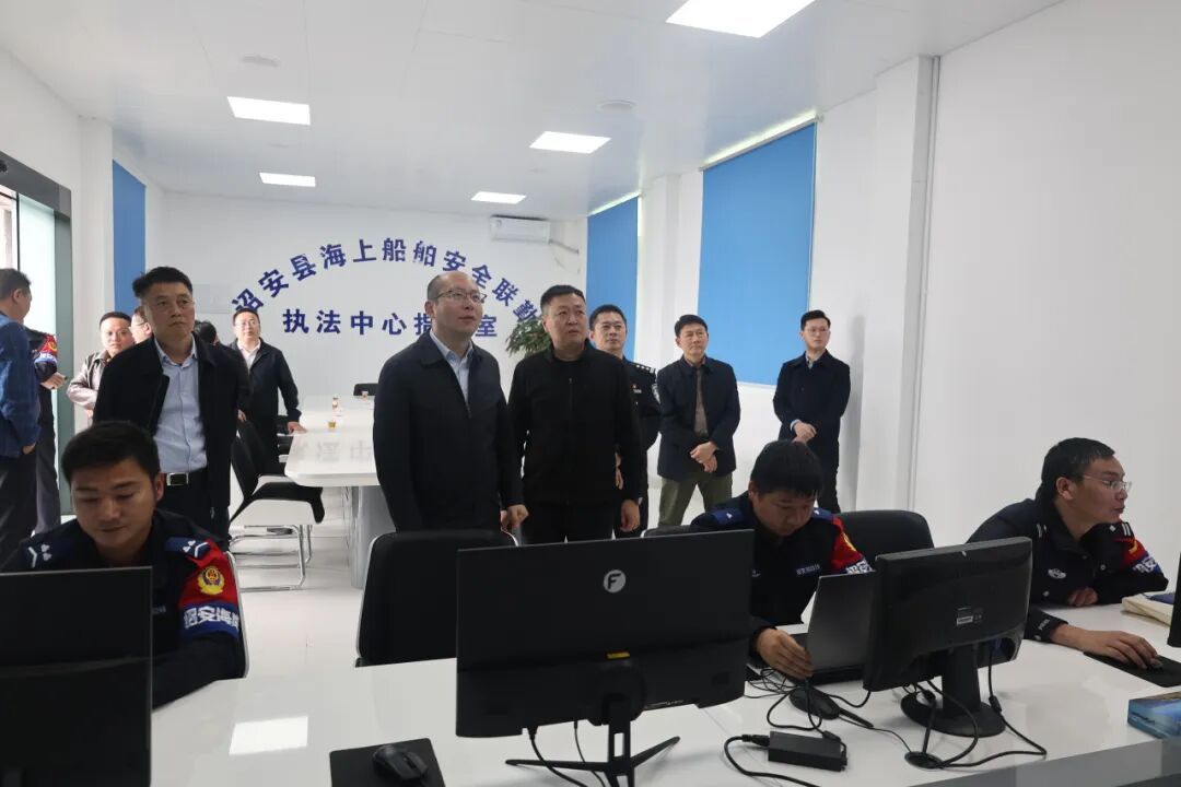 远洋一行先后来到梅岭镇宫口村海上联勤执法中心、赤石湾渔港,通过实地察看、听取汇报、现场交流等方式,详细了解船舶安全管控、渔港运营管理、联勤执法机制运行等情况,并对下阶段海上船舶安全工作提出具体要求。