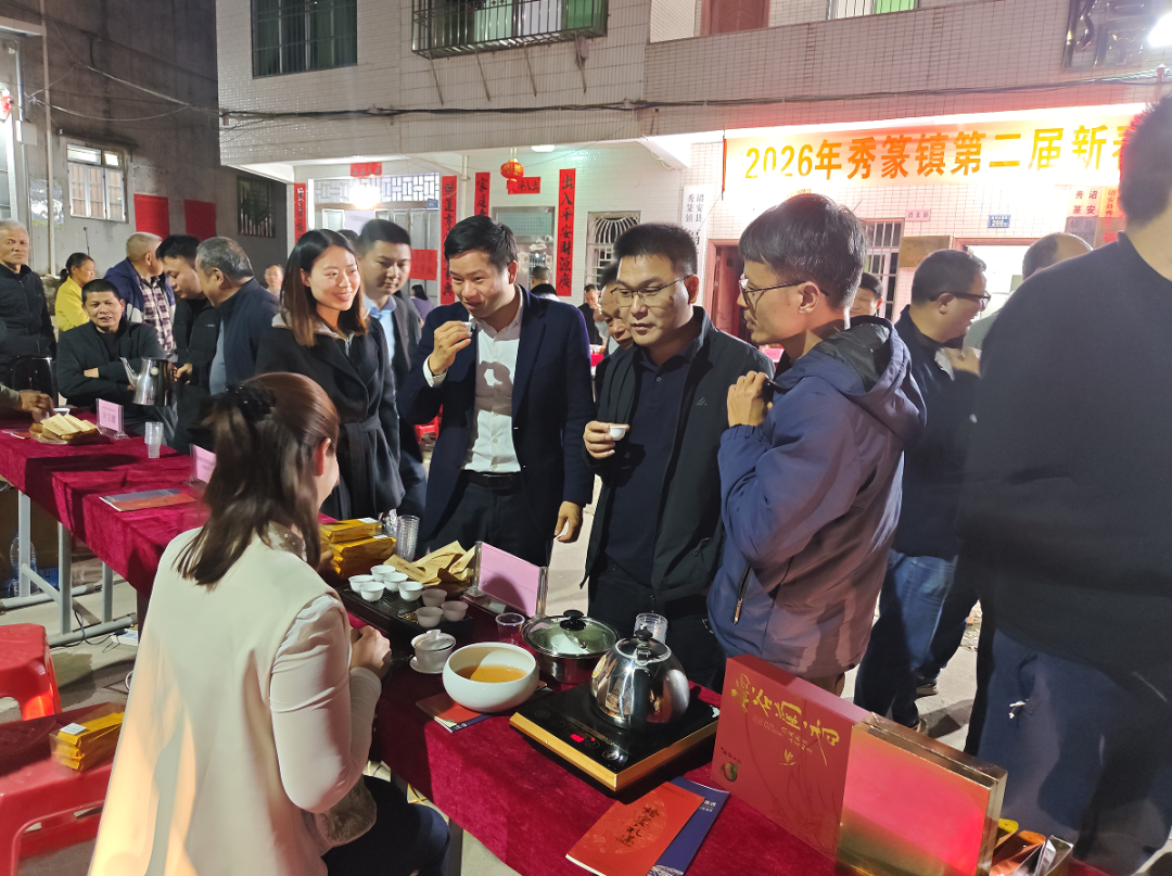 活动中,客家山歌暖场预热,在悠扬传唱中吸引群众阵阵掌声,新春喜庆乐曲循环播放,茶企、煎粄开炉飘香,迅速点燃现场氛围。开幕仪式上,秀篆镇推介秀篆高山茶产业与客家特色文化,并宣布品鉴会正式启动;茶企代表依次发言,盛情邀请群众品鉴交流、共话茶事。