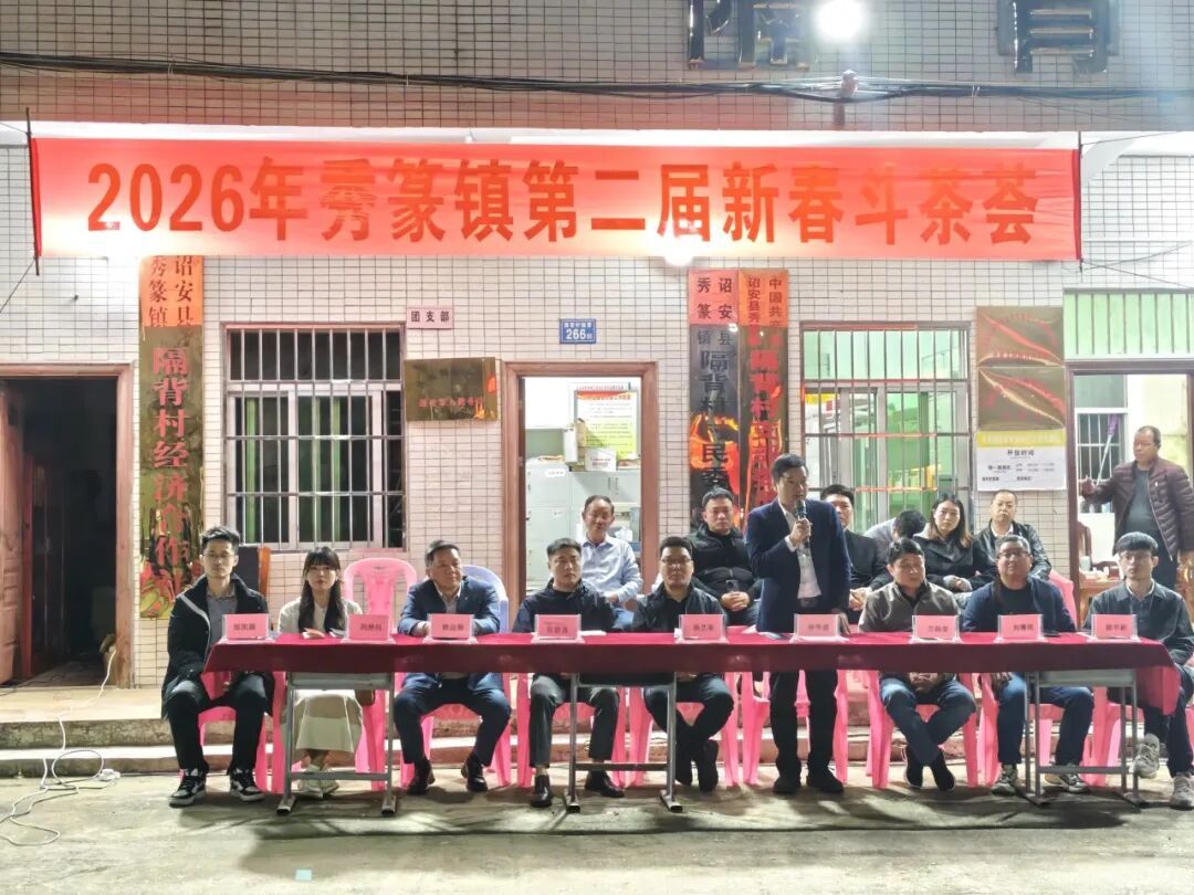 春临篆山添雅韵,茶聚知音话丰年。3月5日晚,秀篆镇第二届新春斗茶荟在隔背村村部举办。本次活动以“篆山茗香·客家年味”为主题,汇聚全镇20家茶企携高山云雾茶、诏安单丛等特色茶品集中亮相,联动传统美食客家煎粄,吸引近300名群众欢聚参与,以茶会友、以食聚人。