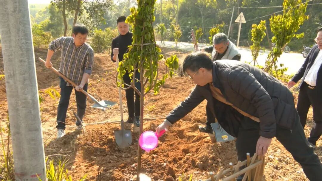 在四都镇四都村植树现场,大家热情高涨、分工协作,挥锹铲土、扶苗填坑、提水浇灌,合力种下一株株象征团结与希望的树苗。干部群众与青少年学生代表一同在村道旁栽下新绿,并挂牌命名“民族团结同心林”,寓意各族儿女同心共植希望、共建绿色家园。