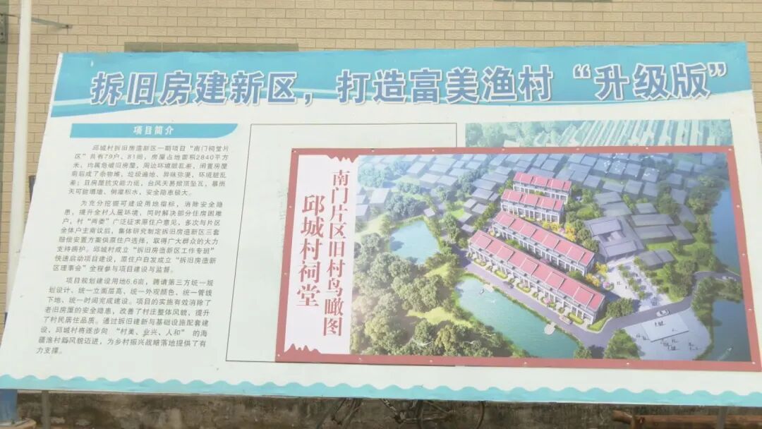 漳州市《关于进一步深化“一革命四行动”扎实推进农村人居环境整治的通知》指出:加强拆后管理利用,坚决防止“一拆了之”,做好拆后平整,管理,利用,采取复耕,绿化,发展经济作物,改造民生项目等形式,促进拆后土地高效利用。邱城村坚持高起点规划,高标准建设,在“拆旧”基础上“建新”,正是对这一要求的精准落地。在县自然资源局,县住建局等部门指导下,结合邱城村实际,金星乡研究制定《邱城村南门祠堂片区改造实施方案》。新规划建设用地近7亩,由专业设计单位统一规划设计,围绕“滨海渔村”特色,推进巷道硬化,绿化亮化,管线落地,雨污分离等基础设施建设。建筑立面融入海洋元素,确保新建片区既符合现代生活需求,又保留渔村肌理,全力打造宜居宜业的滨海渔村新样板。