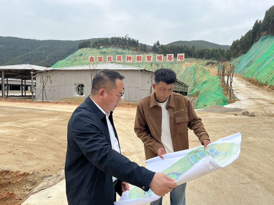 3月20日,四都镇党委书记沈镇聪深入西梧村、鑫盟优质种鹅反季节繁育基地,听取相关工作汇报,详细了解村投公司运营、土地流转及地票发放等工作,实地察看种鹅基地建设、配套设施推进及生产运营情况。沈镇聪指出,要夯实“种”的基础,探索“村企联合、地票赋能”模式,创新土地流转机制,以市场化手段激活集体资产、拓宽农民增收渠道。要做强“养”的核心,全力加快棚舍及配套设施建设进度,推动项目早日建成投产。要延伸“加”的链条,加快推进畜禽屠宰场建设和招商引资力度,集聚加工企业,推进种养加一体化现代农业产业园建设。
