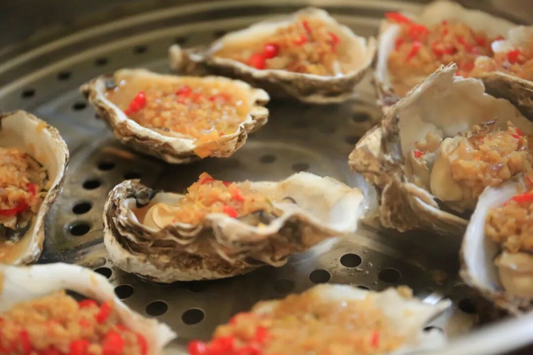 闽菜重本味、擅调味,烹蚝亦如此。早在北魏《齐民要术》中记载的“炙蛎”,在福建沿海演变成炭烤生蚝,漳州、泉州的夜市里,炭火炙烤的生蚝淋上蒜蓉、粉丝,蚝肉的鲜与蒜蓉的香交融,汁水在壳中滋滋作响,是闽地夜市的灵魂滋味。