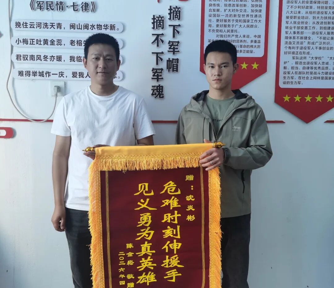 “危难时刻显身手,见义勇为真英雄”——锦旗上的烫金大字,道出了一位家属对军人的无尽感激。4月10日上午,诏安县深桥镇溪南村村民陈金菘等人,专程赶到现役军人沈炎彬家中,不仅按照当地风俗在沈家煮好长寿面,更带来了慰问品和锦旗。