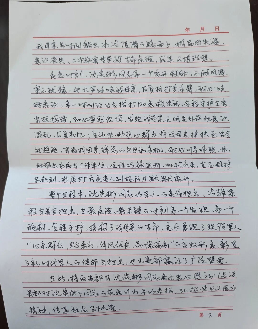 事后经医院诊断,老人双侧锁骨断裂、肋骨骨折、颅内出血,伤情极为严重。“医生说,如果再晚一点发现,或者没人及时救助,后果不堪设想。”老人的儿子陈金菘声音发颤,“那个雨夜,路上几乎没有行人。如果不是沈炎彬多看了一眼,我母亲很可能因为失温和二次伤害失去生命。”
