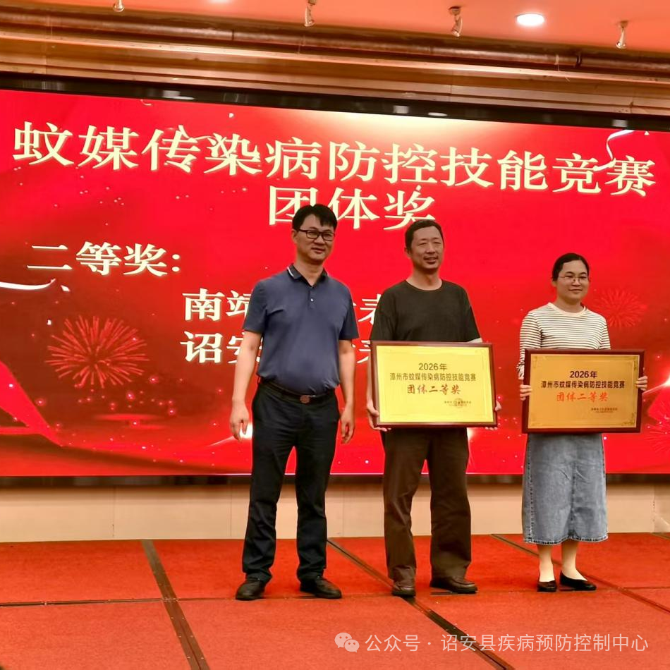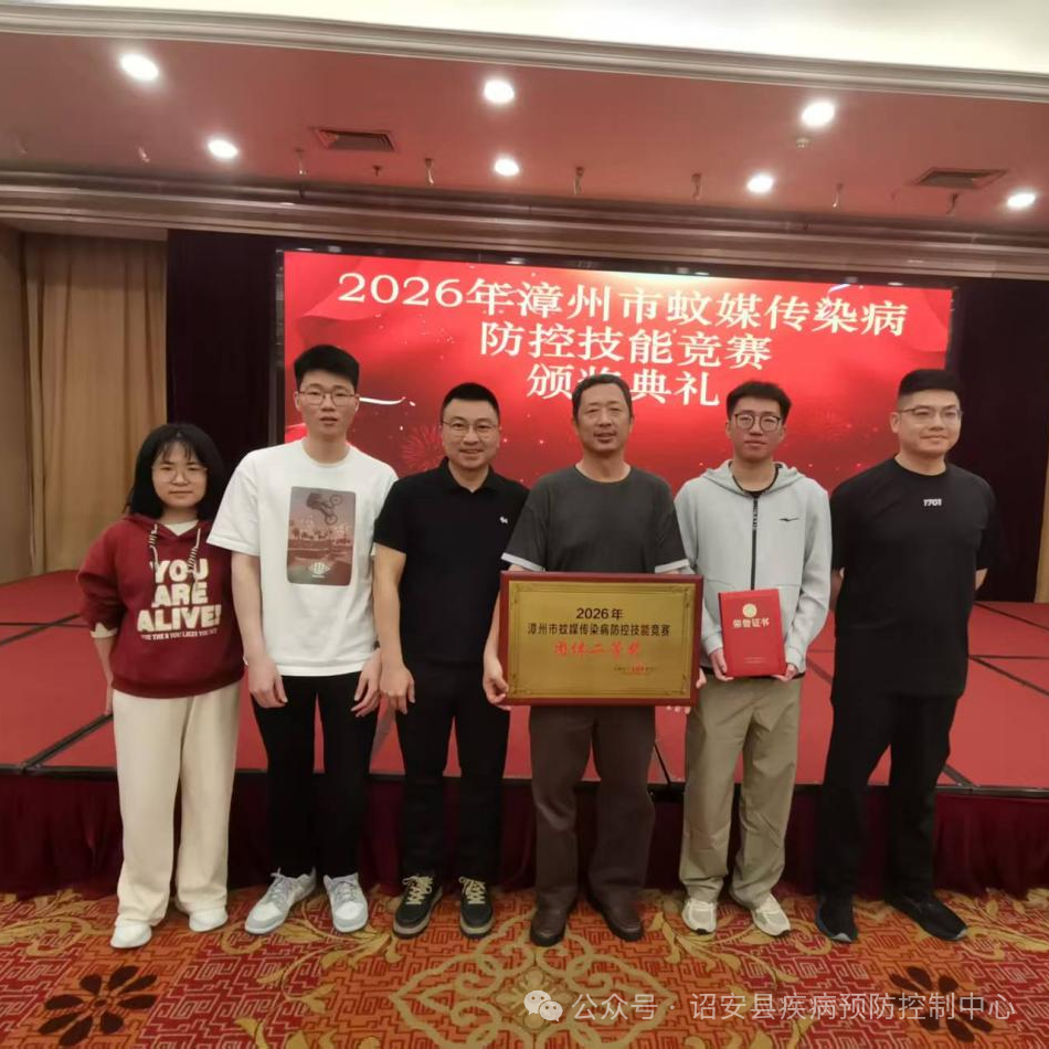 近日,2026年漳州市蚊媒传染病防控技能竞赛在漳州举行,诏安县代表队在团体竞赛中表现优异,斩获二等奖。个人竞赛中,沈杰鑫同志也取得个人二等奖的好成绩。
