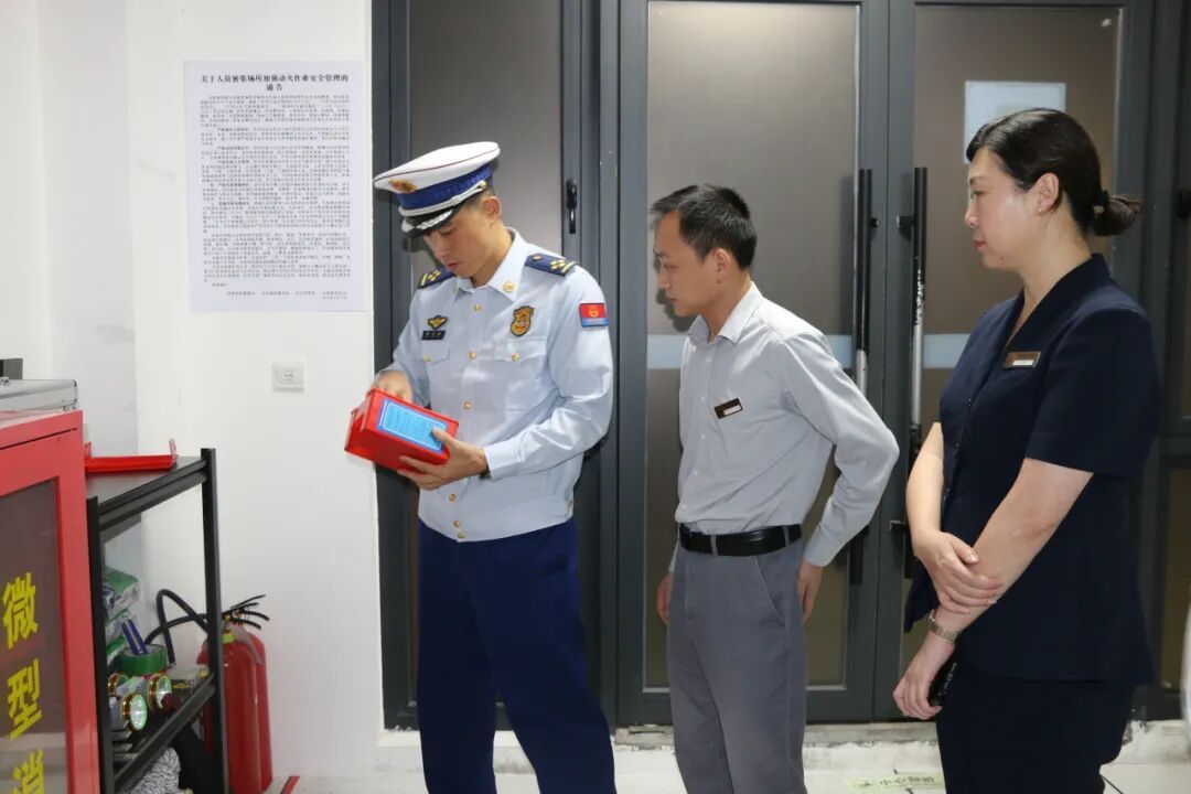 大队紧盯辖区重点场所、重点部位、重点时段不放松,采取“双随机、一公开”抽查、集中夜查等多种方式,深入辖区宾馆酒店、商场超市、公共娱乐场所等人员密集场所,重点对各场所内消防安全责任制是否落实、消防器材、设施是否配备并完好有效,消防疏散通道、电气线路设置是否符合有关规定进行细致检查,并耐心地向场所负责人、员工讲解火灾隐患和防火常识、使用灭火器的正确方法。同时,针对检查中发现的问题,责令场所负责人立即整改,要求场所负责人要高度重视消防工作,认真整改火灾隐患,加强日常消防安全管理和防火检查巡查力度,积极组织员工开展消防安全培训,切实提高消防安全意识,增强自防自救能力。