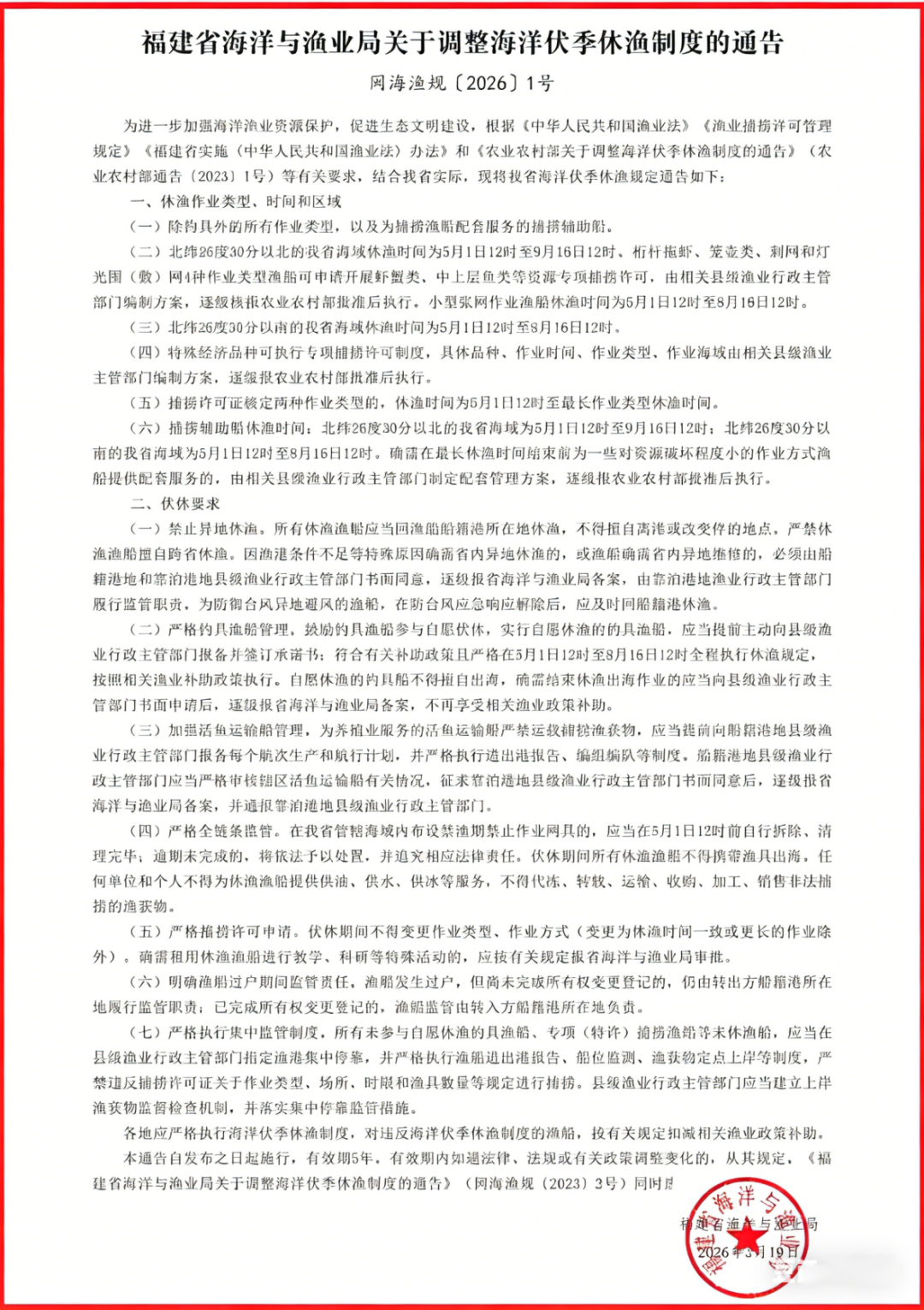 统一执行上述休渔时段。